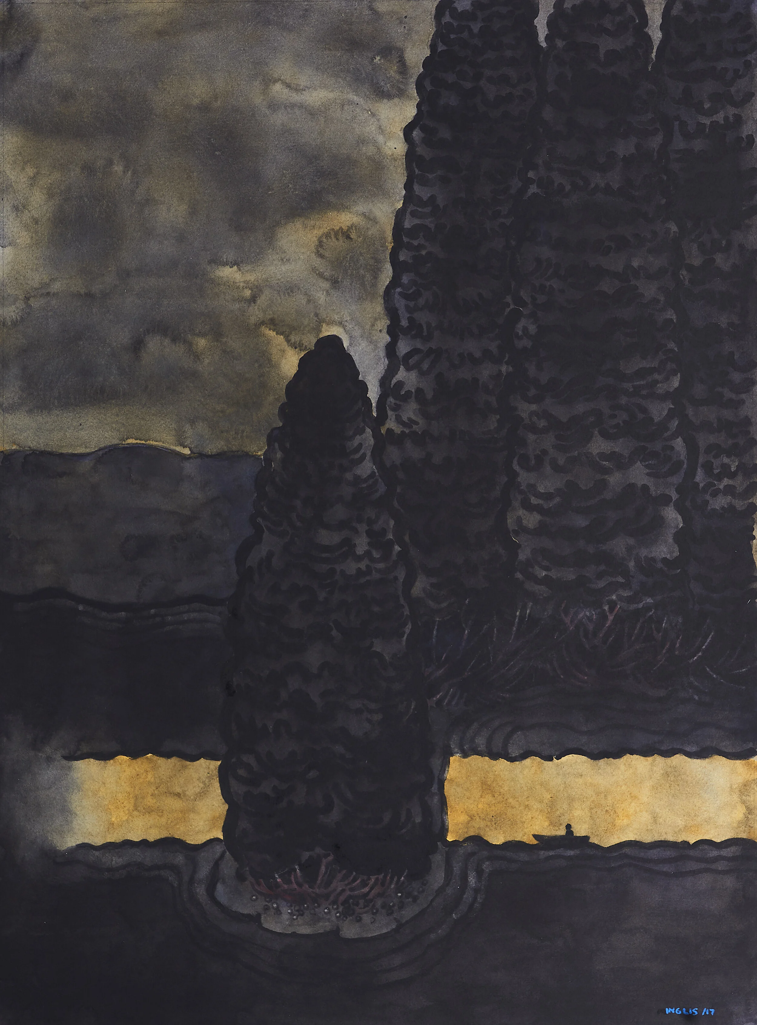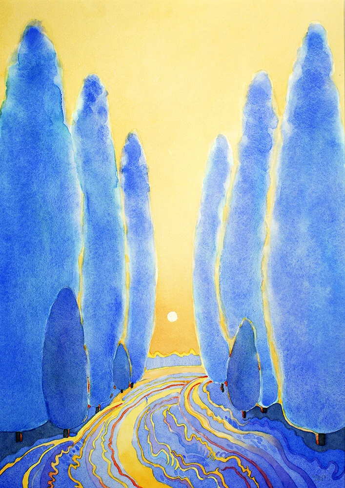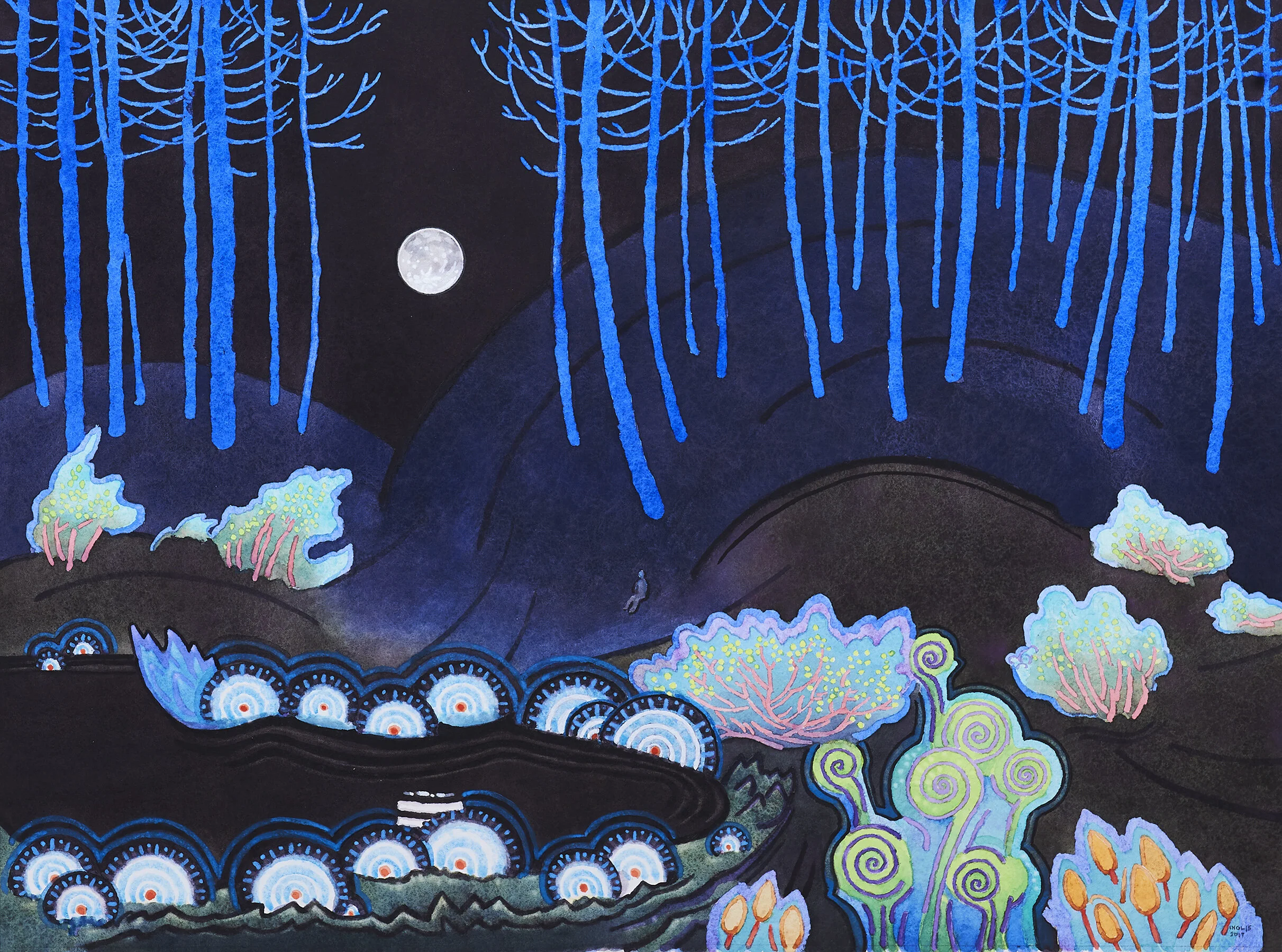 Night Journey with the Moon & Venus, 2004, Watercolour, 17" x 23"