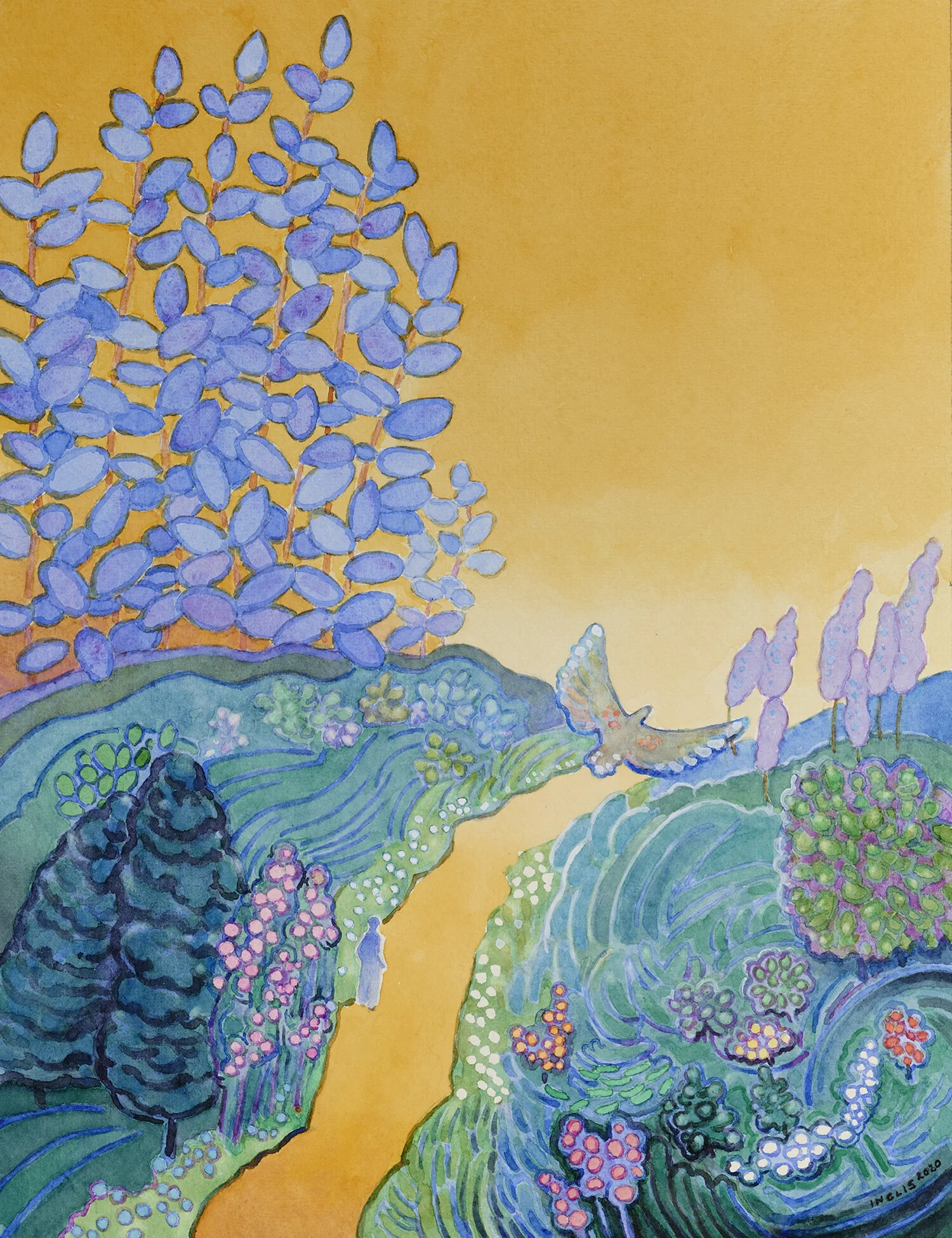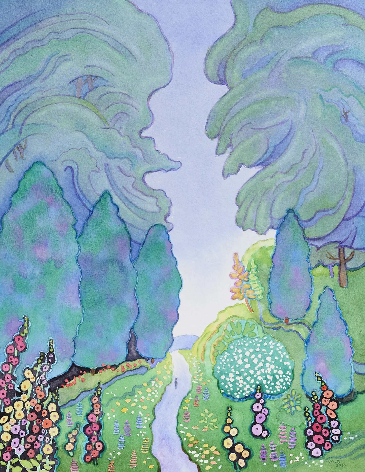 Hollyhock Path, 2020, Watercolour, 14" x 11"